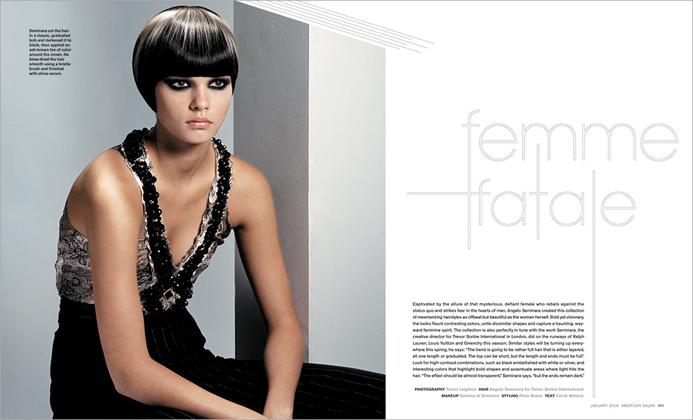 A front-of-book section of American Salon magazine which I designed, directed studio photography, and coordinated with an illustrator.